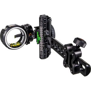 The Axcel Driver Slider Sight with Accustat II Scope in Stealth BH delivers unmatched lightweight performance, weighing in at just 8.6 ounces, making it the lightest slider sight on the market. Engineered from high-grade aluminum, this sight combines bulletproof durability with sleek, minimal hardware for a clean, efficient design. It features a micro-adjustable .019” three-pin setup with a large elevation driver wheel, a Micro Deadstop for fast yardage return, and full second and third axis adjustments. The Accustat II Scope with rheostat light control and customizable pin layout ensures precision at every range. This sight is compatible with Picatinny mounting and is built to withstand rugged hunting conditions while providing ultimate adjustability.