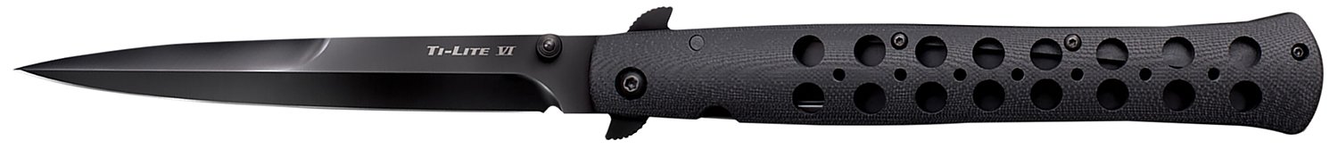 Ti-Lite tactical folders evoke the lines of the classic 1950’s-styled switchblade. They feature American S35VN Alloy blades with DLC (Diamond Like Coating), razor sharp edges and sturdy, needle sharp points. The handles are made of high quality G-10. And for maximum strength and safety, we have equipped our Ti-Lites with our stainless steel leaf spring locks. The Ti-Lites come equipped with a steel pocket clip, and can be opened by using the thumb studs or by snagging a quillon on the edge of your pocket as you draw your knife out.