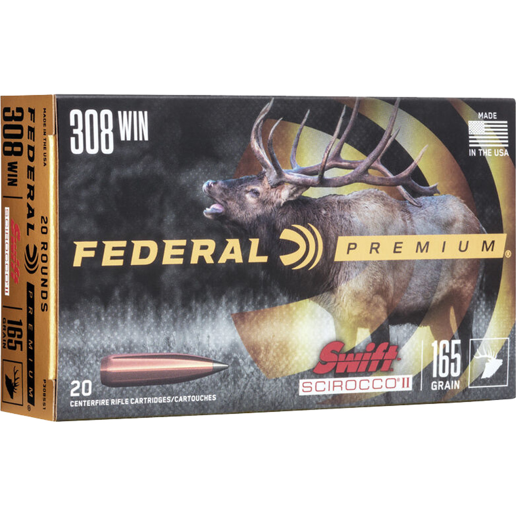 Federal Premium Swift Scirocco II loads have a polymer-tipped bullet streamlined and design and high ballistic coefficient produce flat trajectories, while retaining more velocity and energy downrange. Aided by its Signature Black Tip, the bonded Scirocco II expands at minimal velocities yet offers high weight retention at close range thanks to its bonded copper jacket.
