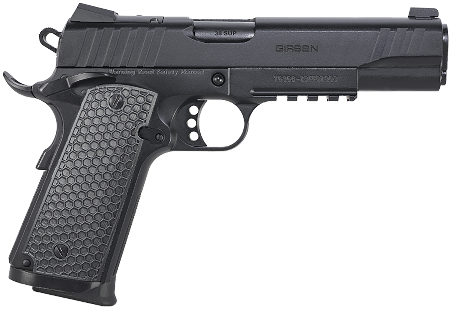 Girsan 391049 MC1911 S Influencer Full Size 38 Super 9+1 5″ Blued Steel Barrel, Black Optic Ready/Serrated Steel Slide & Frame w/Picatinny Rail & Beavertail, Black Polymer Grip