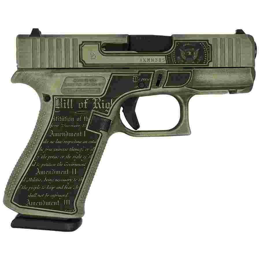 Glock 43X “Trump 24″ Crushed Silver Distressed Handgun 9mm Luger 10rd Magazines(2) 3.4” Barrel Accessory Rail USA Made