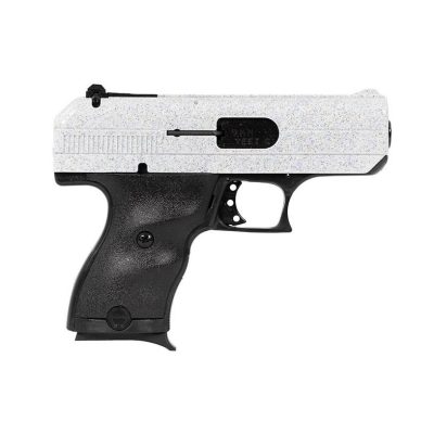 This 9mm has a 3.5" barrel for an overall length of 6.5". It has a high-impact polymer frame with high-impact grips and a sparkle white finish. The durable attractive easy-grip finish assures a firm comfortable grip and exceptional recoil control. It has an 8+1 capacity and a quick on/off thumb safety magazine disconnect safety and last round lock open feature. It has 3-dot sights with a fully-adjustable rear and an additional rear peep sight. Hi-Point produces affordable American-made firearms featuring 100% American parts and assembly. Hi-Point handguns are +P rated and accept all factory ammunition. Each comes with a free trigger lock.