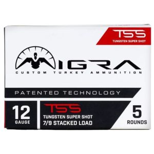 Migra Staxd TSS Turkey Load is the premium choice for turkey hunters seeking precision and unmatched performance. This 12-gauge, 3-inch shell features patented stacked load technology paired with powerful Tungsten Super Shot (TSS) to deliver exceptional pattern density and accuracy. With a shot size of 7/9 and a velocity of 1,200 fps, this 2-ounce load ensures reliable, effective results in the field. Designed with hunters in mind, Migra’s custom turkey ammunition provides the advanced technology needed to make every shot count.