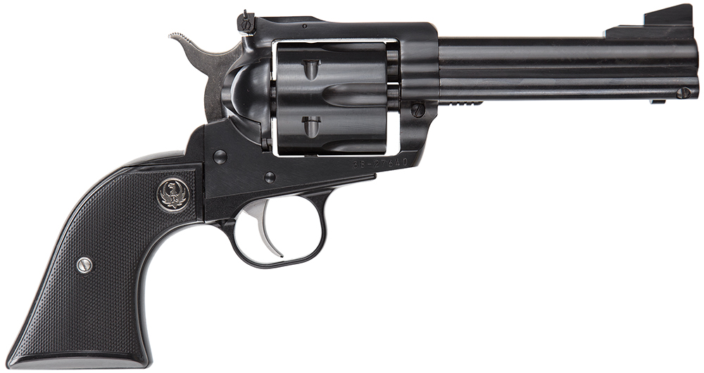 Ruger’s Blackhawk revolver meets the needs of today’s single-action shooters. The patented transfer bar mechanism and loading gate interlock provide an unparalleled measure of security against accidental discharge. Its cold hammer-forged barrel results in ultra-precise rifling that provides exceptional accuracy, longevity and easy cleaning. The Blackhawk has ramp front and adjustable rear sights along with traditional western-style, hand-filling grip. This model has a 4.62″ blued barrel, frame, and cylinder. It also has black rubber girp.