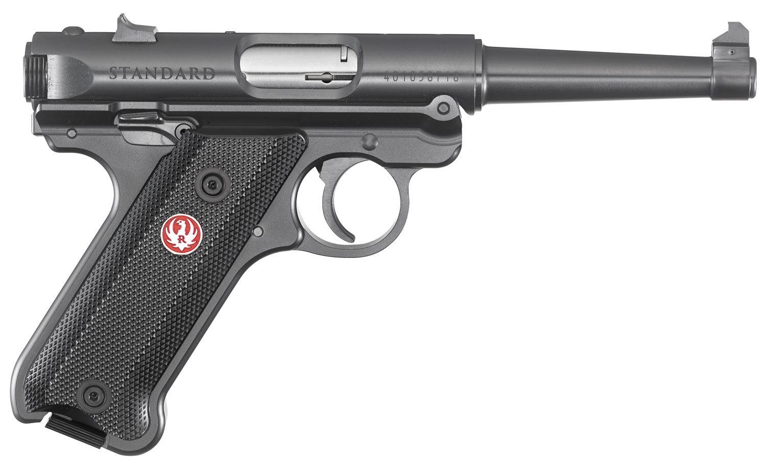 The Mark IV has a simple, one-button takedown for quick and easy field-stripping and proper chamber-to-muzzle cleaning. Features contoured ejection port and easy-to-grasp bolt ears; a drilled and tapped receiver for Weaver or Picatinny-style rail; ambidextrous manual safety can be converted to left-side only with included washer; push-button magazine release on the left side of the frame; Pressing a button in the back of the frame allows the barrel-receiver assembly to tilt up and off the grip frame without the use of tools. Includes two 10rd magazines.