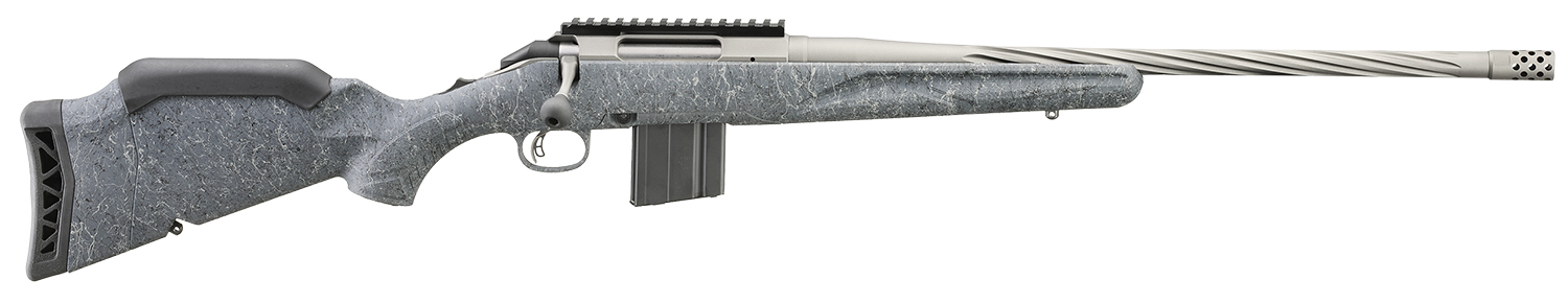 Ruger 46910 American Gen II Full Size 6mm ARC 10+1 20″ Cobalt Cerakote Threaded Barrel, Picatinny Rail Steel Receiver, Gray Splatter Adjustable Synthetic Stock