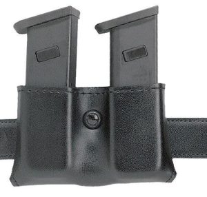 The Model 079 is a patented holder that features a low cut design for easy magazine grasp. Molded from Safari-laminate it holds magazines tightly in place. The Model 079 holder differs from the 076 competition version in that it has two straps on the back that form the belt loop. The 079 also features an adjustable magazine tensioning device that lets an officer set the exact amount of friction required to remove the two magazines.