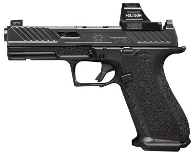 Shadow Systems DR920 Elite Slide Holosun Pistol in 9mm 4.5 in. Unthreaded bronze barrel. Tritium front sight. Black Frame & slide with Lightning cuts. Factory Holosun 507c. Flat faced aluminum trigger. 17 rd. magazine.