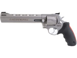 The Taurus M444 Raging Bull Revolver is a rugged and powerful handgun designed to handle the .44 Magnum round with precision and reliability. Featuring a 8.375-inch stainless steel barrel, this revolver offers exceptional accuracy and durability, making it a favorite among hunters and shooting enthusiasts. Its double/single-action trigger provides versatility, while the cushioned rubber grips and factory porting reduce felt recoil for improved handling. With a 6-round capacity, adjustable rear sight, and a sleek stainless finish, the Raging Bull is built for tough use and delivers consistent performance.