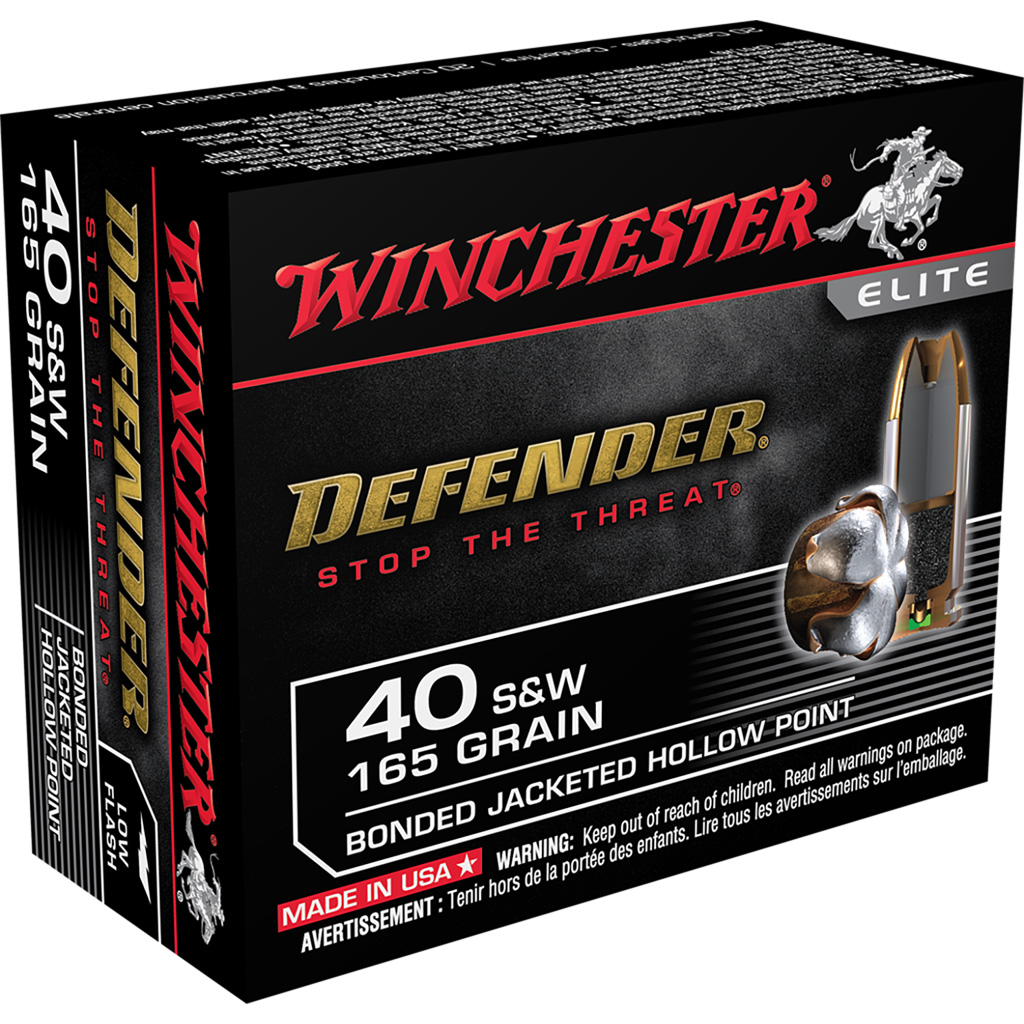 Winchester Defender Pistol Ammo in .40 S&W is engineered to deliver superior performance in personal defense situations. Loaded with a 165-grain bonded jacketed hollow point bullet, it expands up to 1.5 times its original diameter for consistent terminal performance. The proprietary bonding process fuses the jacket to the lead core for improved penetration and weight retention. Designed for low flash in reduced-light environments, it ensures visibility and control. With a muzzle velocity of 1140 fps and energy of 476 ft-lbs, this load provides reliable, threat-stopping power when it matters most.
